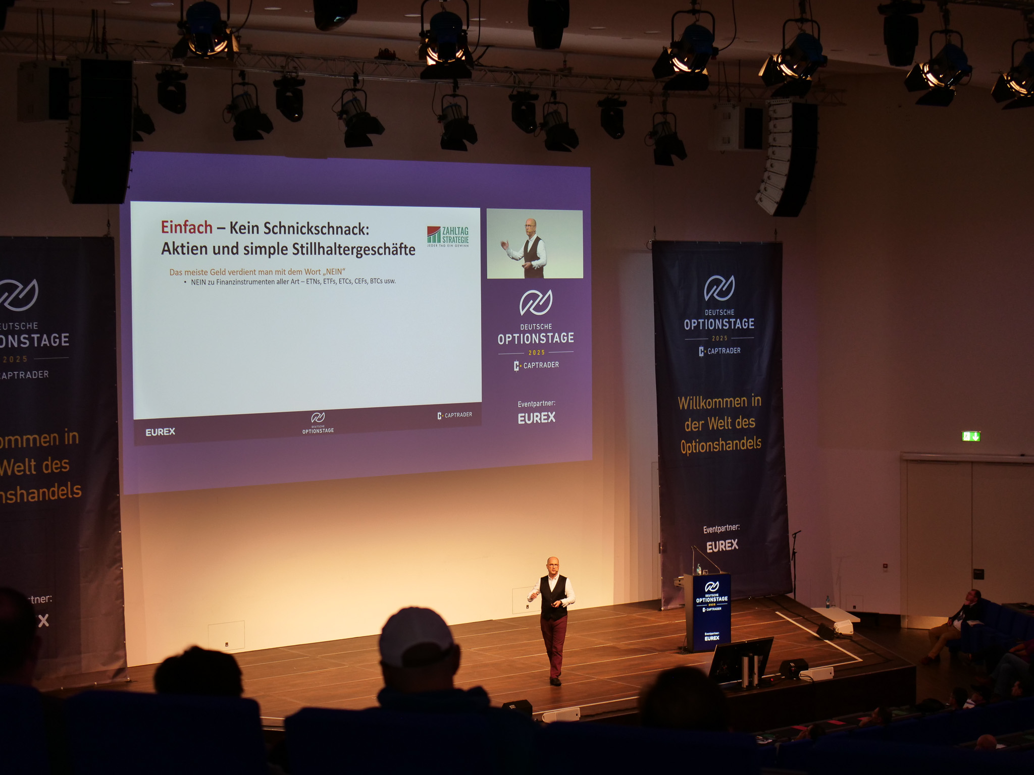Was für zwei großartige Tage! Die zweiten Deutschen Optionstage fanden am ersten Februarwochenende 2025 statt und waren auch in diesem Jahr ein voller Erfolg – mit 17 spannenden Vorträgen, über 20 Experten vor Ort und mehr als 500 Teilnehmern. Die gestiegene Nachfrage im Vergleich zum Vorjahr zeigt das wachsende Interesse am Optionshandel, zu dem zahlreiche wertvolle Einblicke vermittelt wurden.